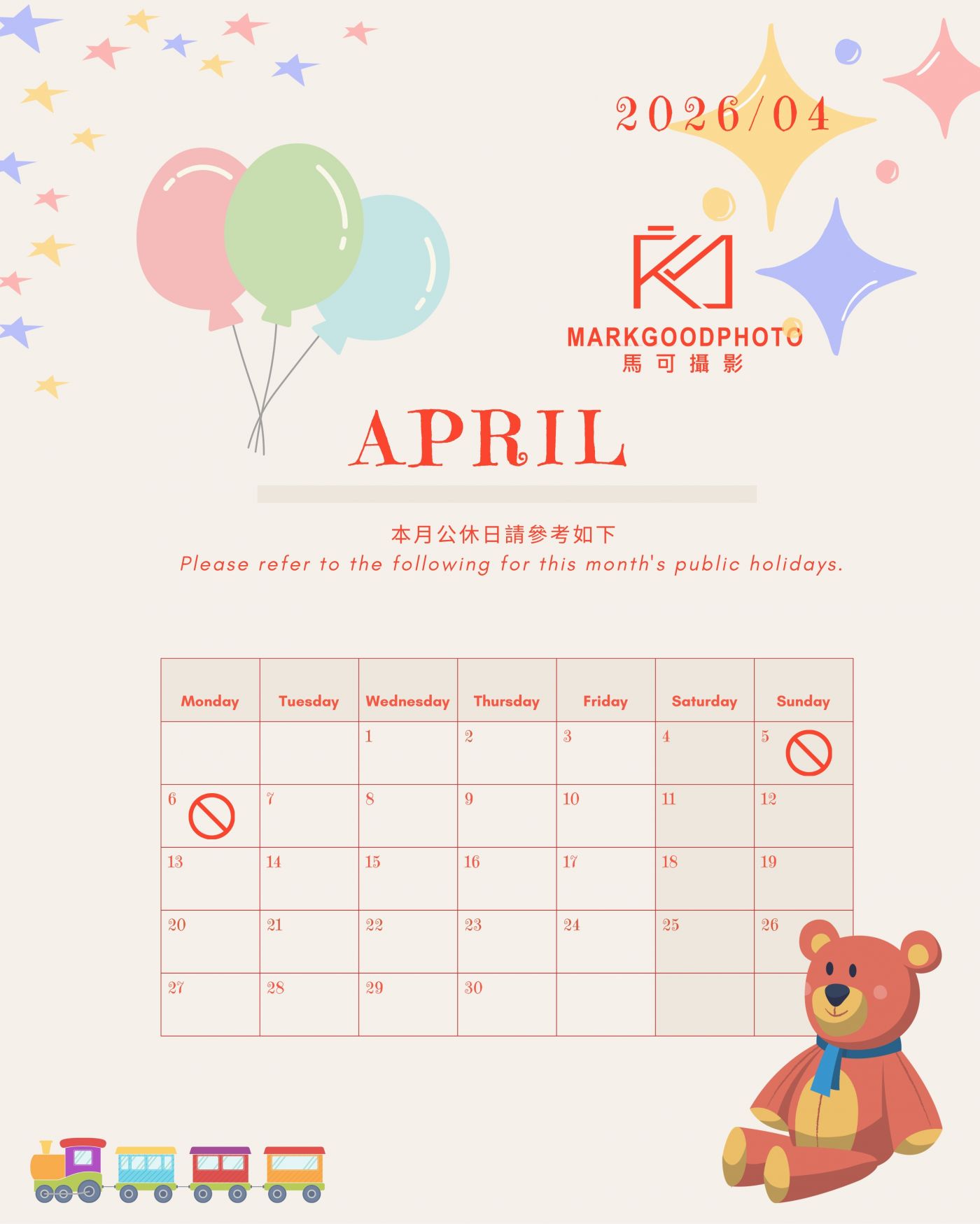 2026 年 04月 公休時間