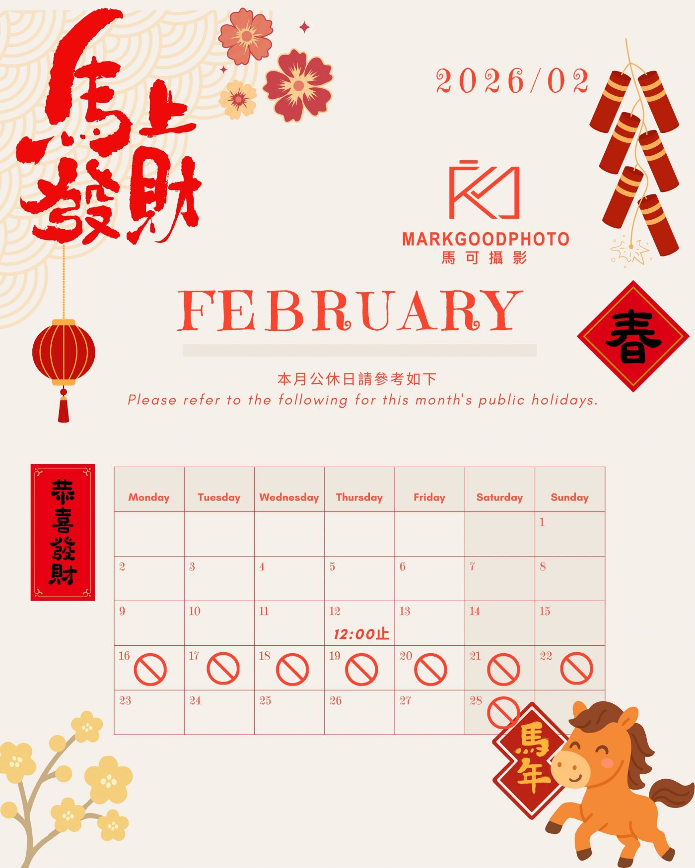 2026 年 02月 公休時間